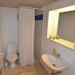Holiday Home Blokhus 49 dispõe de uma casa de banho com banheira de hidromassagem e chuveiro.